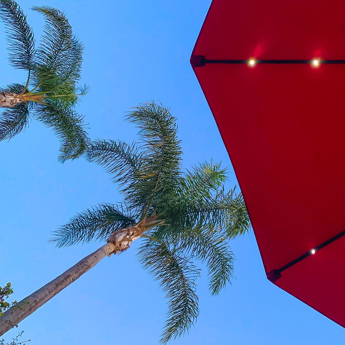 It’s brilliantly simple — solar umbrellas block the sun’s rays all day long, then turn around and efficiently convert that energy into solar-powered outdoor lighting. There’s no complicated set up or wiring. Just open the umbrella and let it do its thing.