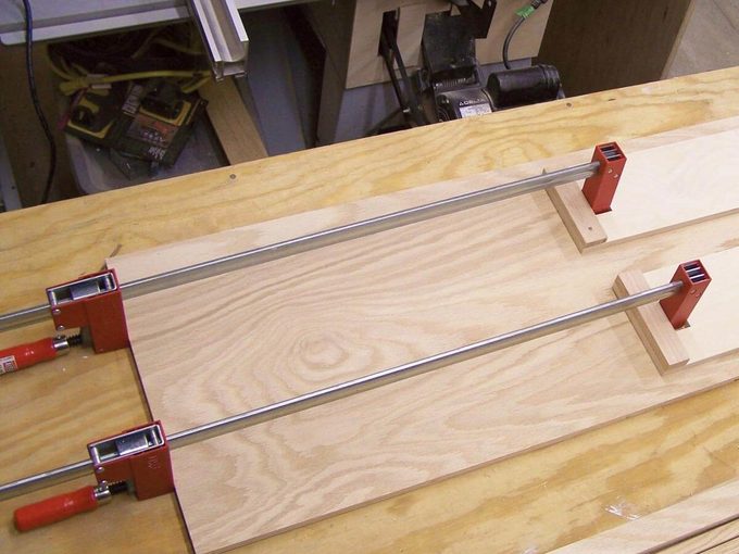 Build some clever plywood clamp extenders to use when bar clamps are too short to do the job. It beats the trick of joining two bar clamps in the middle.
