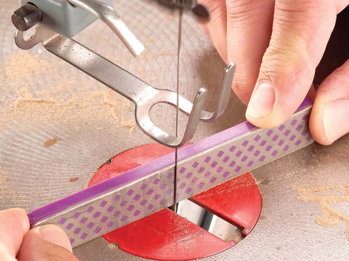 Saw tight corners with less binding by lightly rounding over the back edges of the blade. With the saw running, rotate a sharpening stone on the back of the blade to break the sharp corners or wire edges created during blade manufacture.