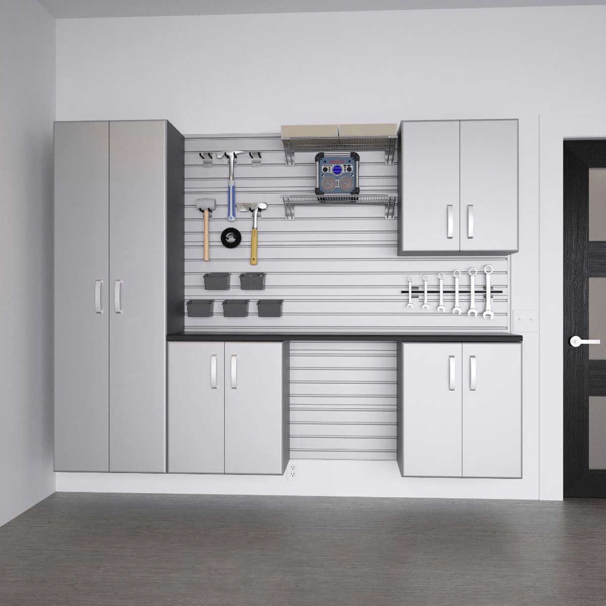 Not only will this flow wall cabinet set organize all of your DIY equipment, but it will look absolutely slick in your garage. Keep everything in order with these cabinets, along with five bins, six hooks, w magnet hook, and two metal shelves. Plus with that 6-in. work surface, it’s like having your own DIY workshop right in the house.