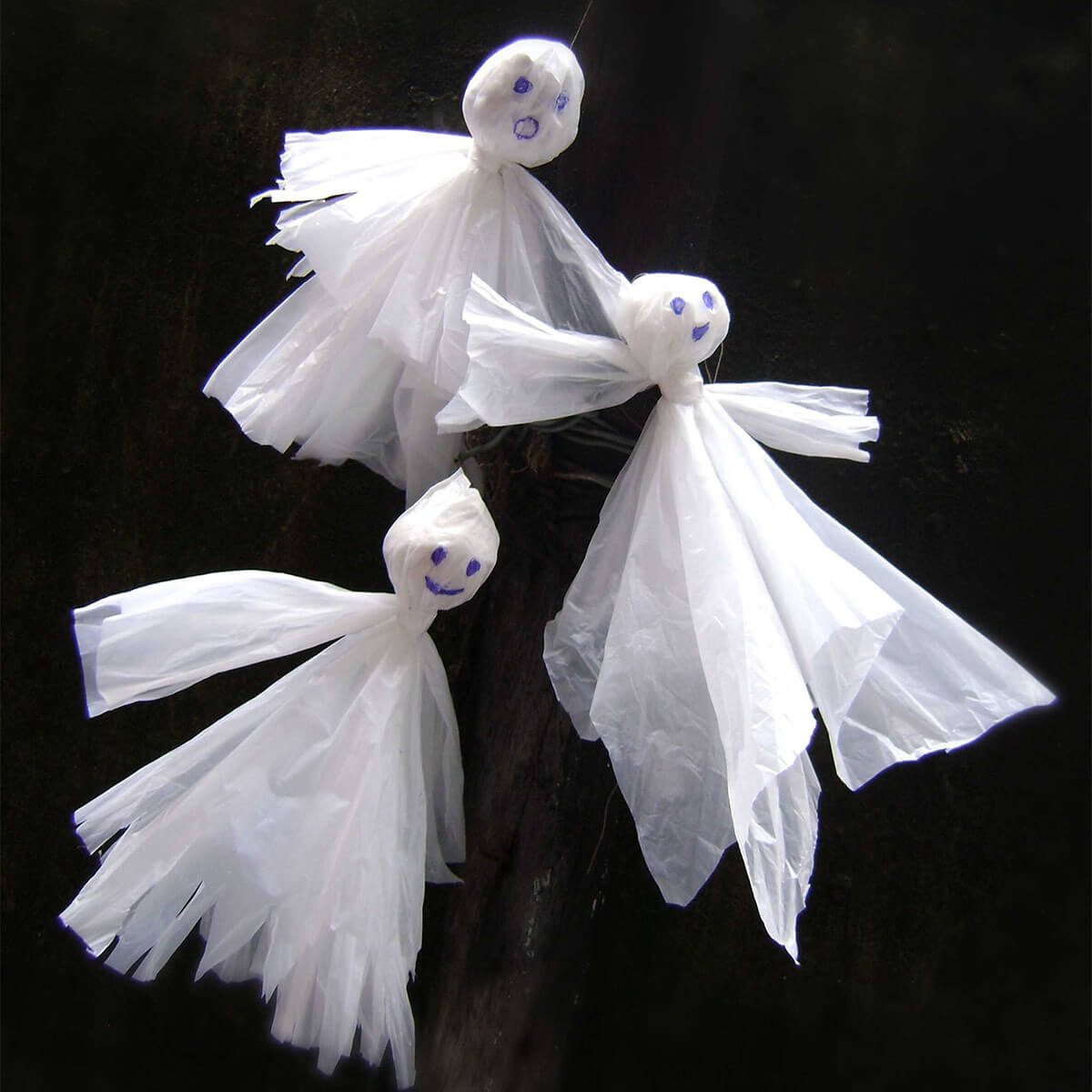 Decorate your home this Halloween with plastic bags. Your kids can help you turn the bags into ghosts with just scissors and some yarn. For instructions, visit Craftideas.