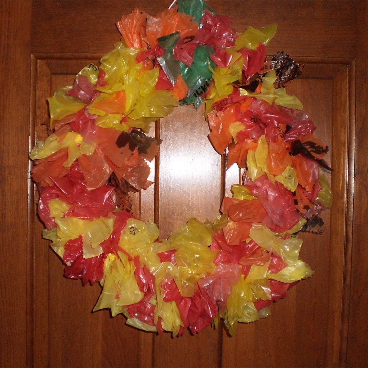 Try using plastic bags to create a wreath for every season. There are several ideas on the AARP Community website that will surely look great on your front door.