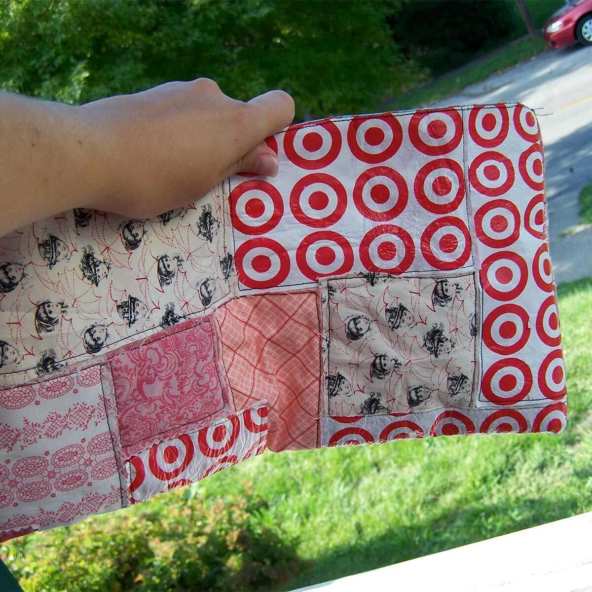 Looking for a sewing project? This clutch is made from plastic grocery bags and scrap pieces of fabric. Read about it and see more photos.