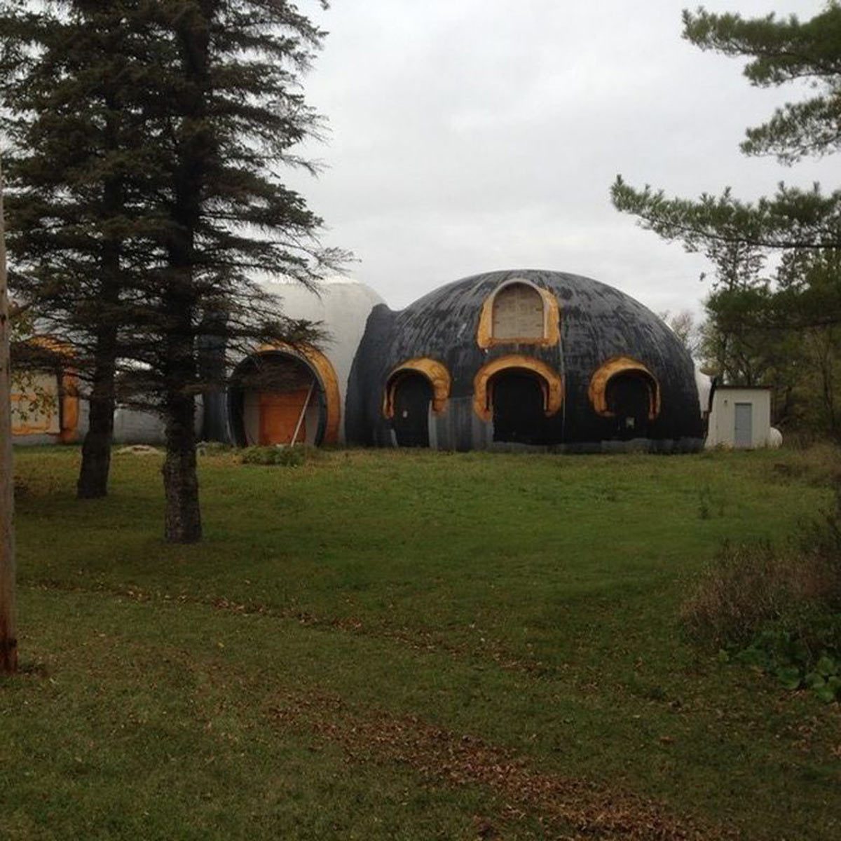 This property in Minnesota features a concrete dome home that totals 6,400 square feet. It’s spray foam insulated and creates a striking image from afar.