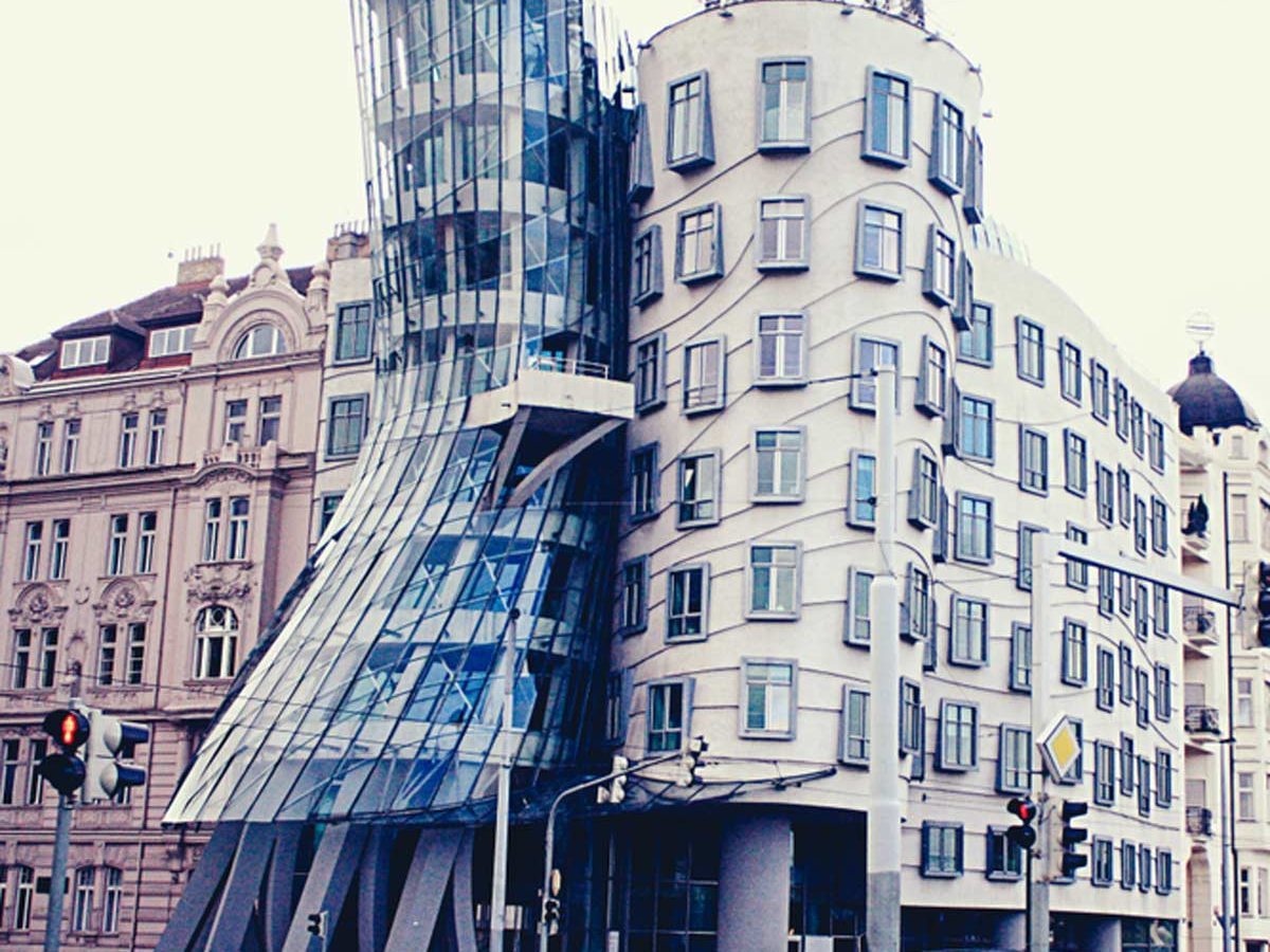 The Dancing House (nicknamed “Fred and Ginger” because it resembles two people dancing like Fred Astaire and Ginger Rogers), designed by architects Vlado Milunić and Frank Gehry in Prague, rose up from a spot that got bombed in 1945 by the U.S. Vaclav Havel, a dissident when the former Soviet Union controlled Czechoslovakia and the first president of Czechoslovakia following the Velvet Revolution that led to the country’s independence, lived next to the site growing up. Havel supported the project when Milunić first talked about it. The building contrasts the pristine Gothic, Neo-Baroque and Art Nouveau buildings throughout the city. It’s also a response to the Eastern Bloc buildings that sprouted up during communism. It signals a shift from rigidity.