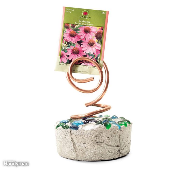 These one-of-a-kind plant markers hold a label or seed packet with bent copper wire set in a decorative base. They’re very easy to assemble and you can decorate with rocks, glass beads, seashells, whatever you have on hand. These plant markers are great gifts for every mom or grandma who likes to garden.