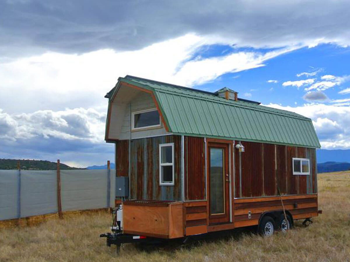 The Boulder model tiny home from Rocky Mountain Tiny Houses uses reclaimed corrugated tin and cedar boards prominently as siding. Inside portions of the home use old barn wood. This model with recycled house material starts at $35,000 and is available in 16-, 18- and 20-ft. trailers.