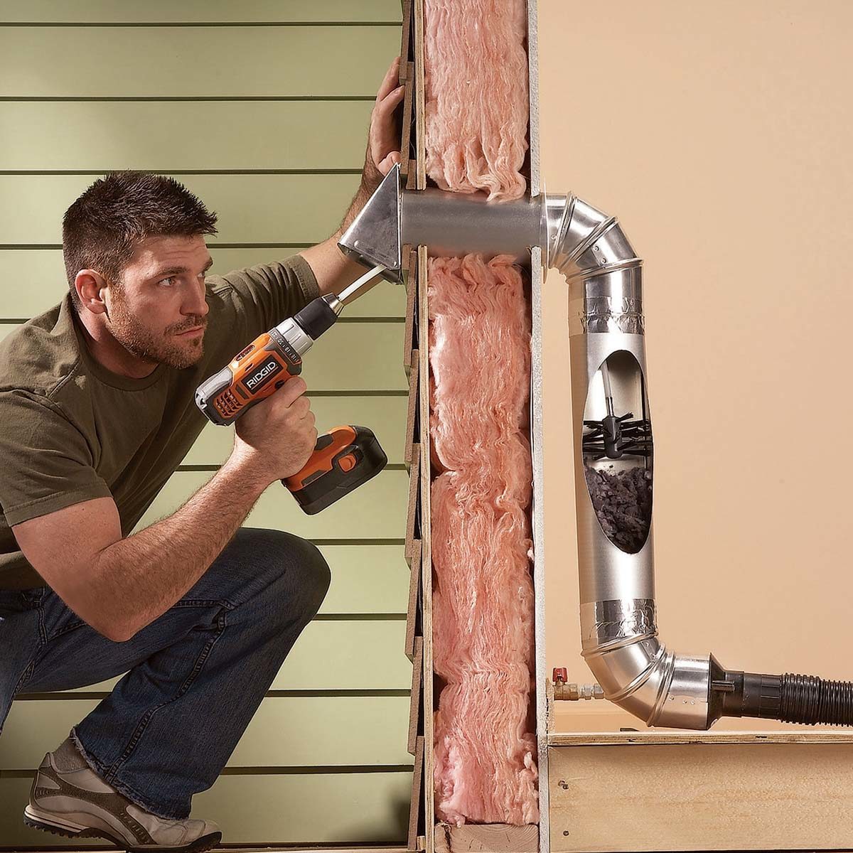 A clogged lint screen or dryer duct drastically reduces the efficiency of your dryer, whether it’s gas or electric. Clean the lint screen after each load and clean the exhaust duct once a year. The cleaner shown here has an auger brush that attaches to a drill to clean out the ducts. It’s available at home centers.