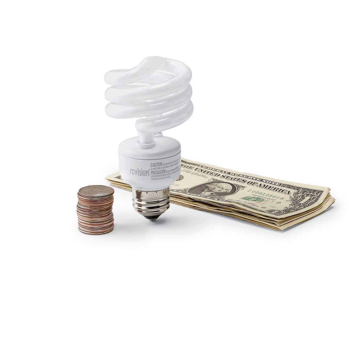 CFL bulbs will provide 10,000 hours of light and use $10.40 of electricity (at 8 cents per kilowatt hour). To get the same output with incandescents, you would have to use seven bulbs, which would cost less up front, but the electricity would cost $48. Check out our guide to CFLs so you know what you’re getting into.