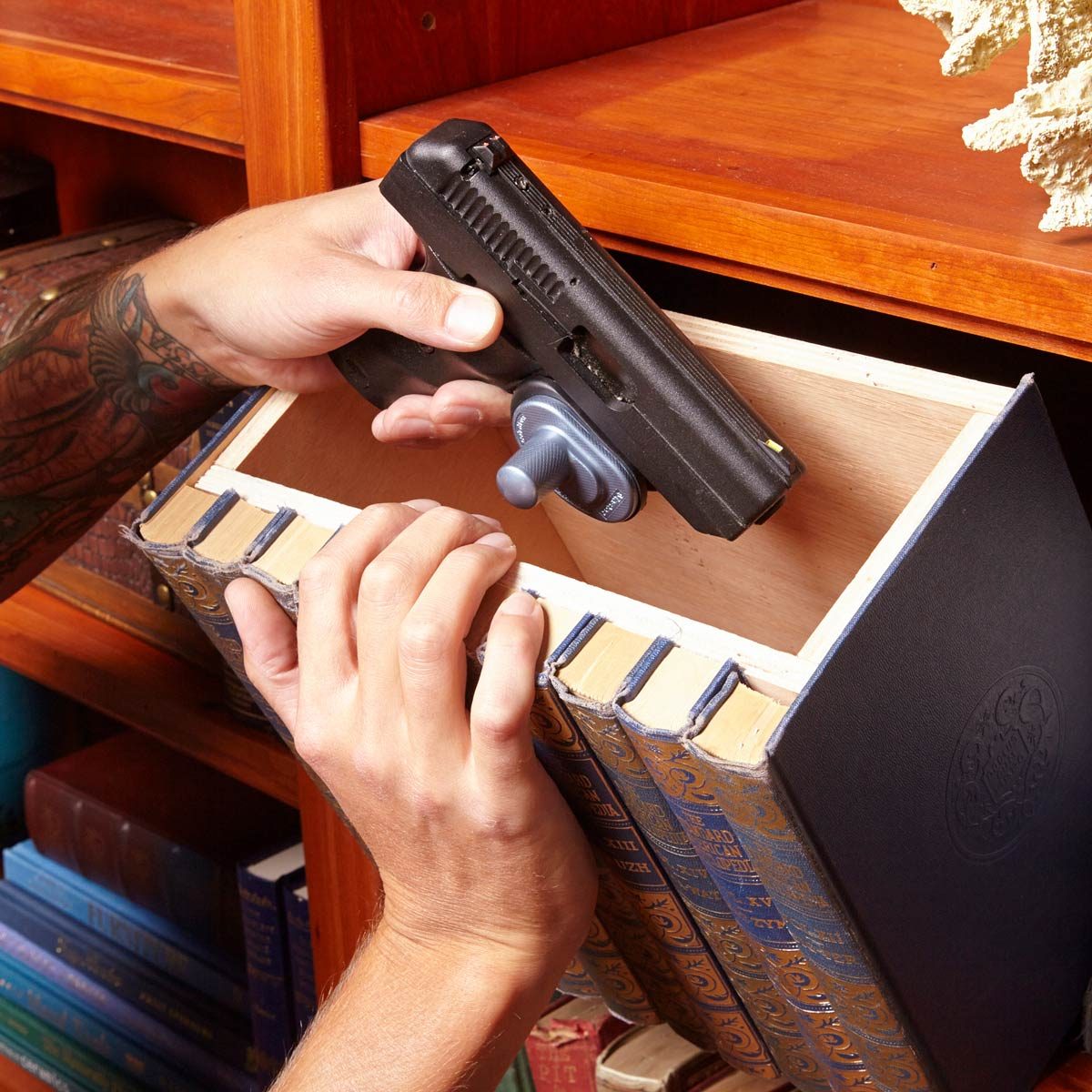 All you need to create this amazing hidden storage box is glue, a sharp knife and a simple box frame. This is one home security hack that looks as good as it works.