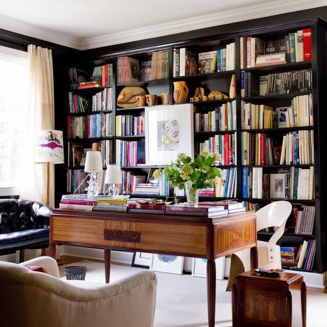 Take advantage of every square inch. Kristin Jackson of The Hunted Interior took it upon herself to make this black beauty. The built-in, floor-to-ceiling design displays a carefully curated selection of books and decorative objects.