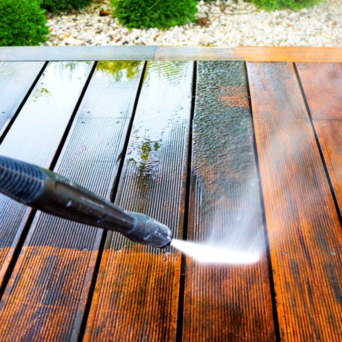 Pressure nozzles are available at most hardware and home gardening stores and easily attach to the end of your hose. Pressure washers are strong and have been known to cause injuries, so make sure you hold the nozzle firmly with both hands.