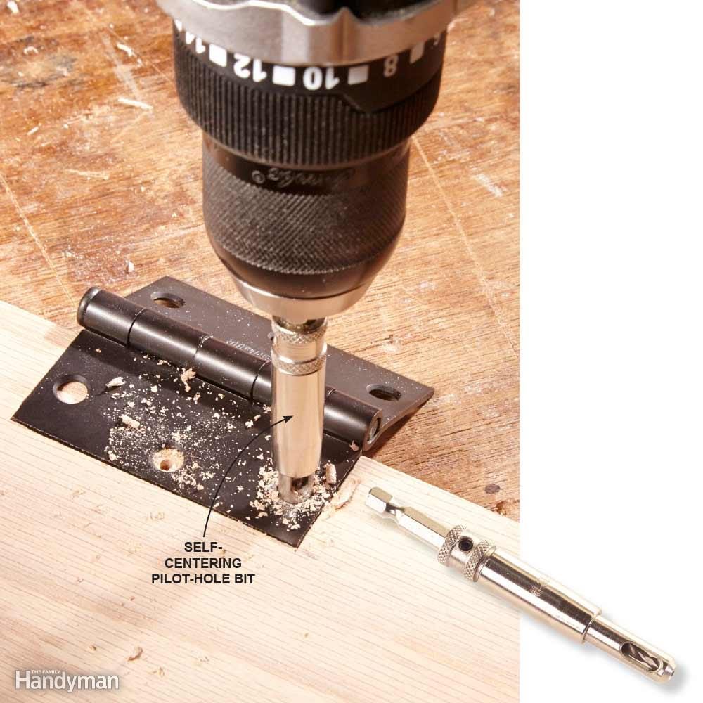 When you drill pilot holes for hardware mounting screws, it’s tough to keep the hole centered. And if the hole is off-center, the screw won’t seat properly. That’s where self-centering pilot bits come in handy. Self-centering bits drill a centered pilot hole (the cone-shape guide keeps the bit centered while you drill the hole) resulting in perfectly centered screws. There are several sizes of self-centering bits available. Choose one to match the size of screw you’re using.