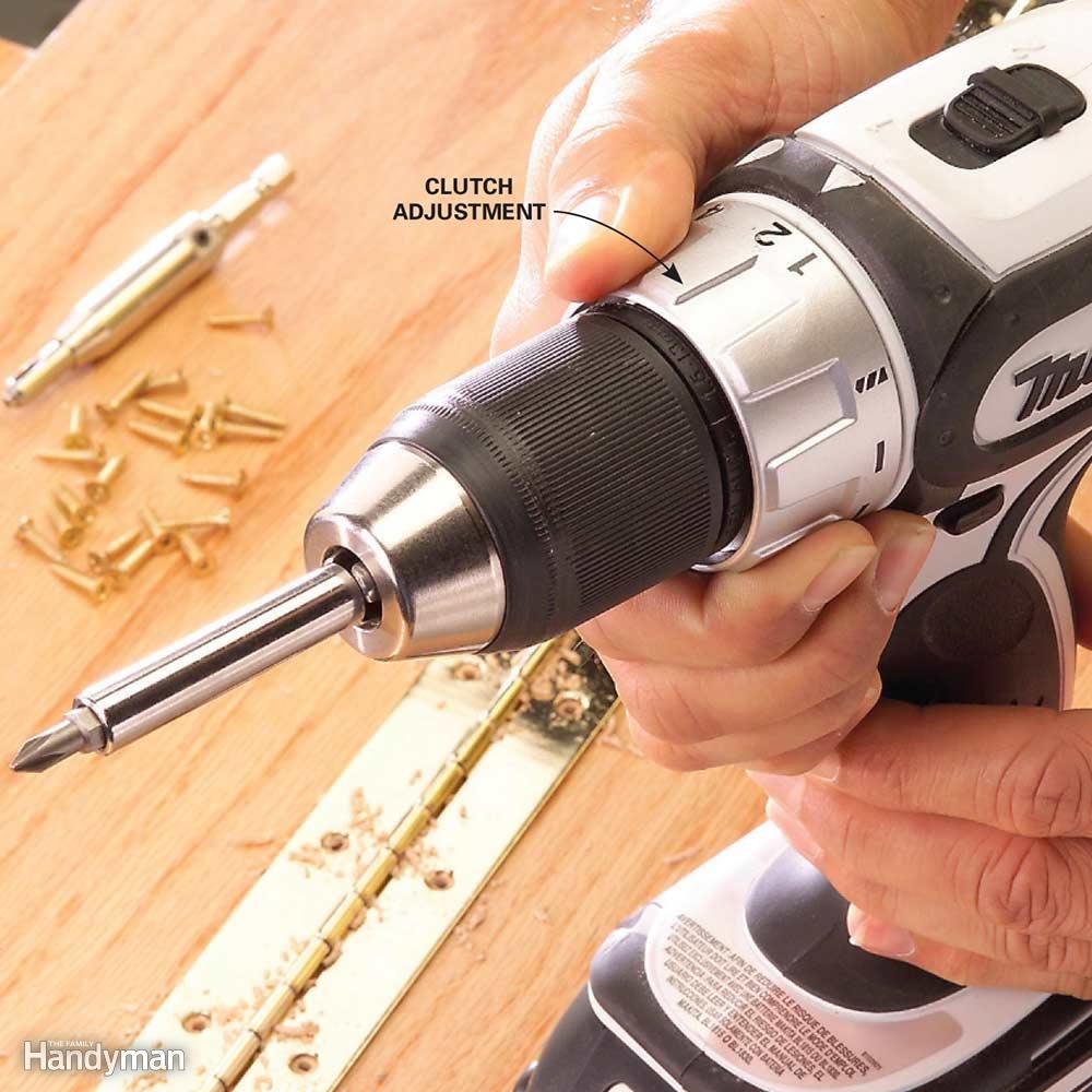 At times, drills can provide too much power, causing screw heads to snap off or strip, especially with small brass or aluminum screws. Most newer cordless drills are equipped with a clutch, which can eliminate this problem. Set the clutch by twisting the ring near the chuck to the smallest number. Try driving a screw. If the clutch releases (you’ll hear a ratcheting noise) before the screw is fully driven, move the setting to a higher number. Choose a setting that drives the screw fully before the clutch releases.
