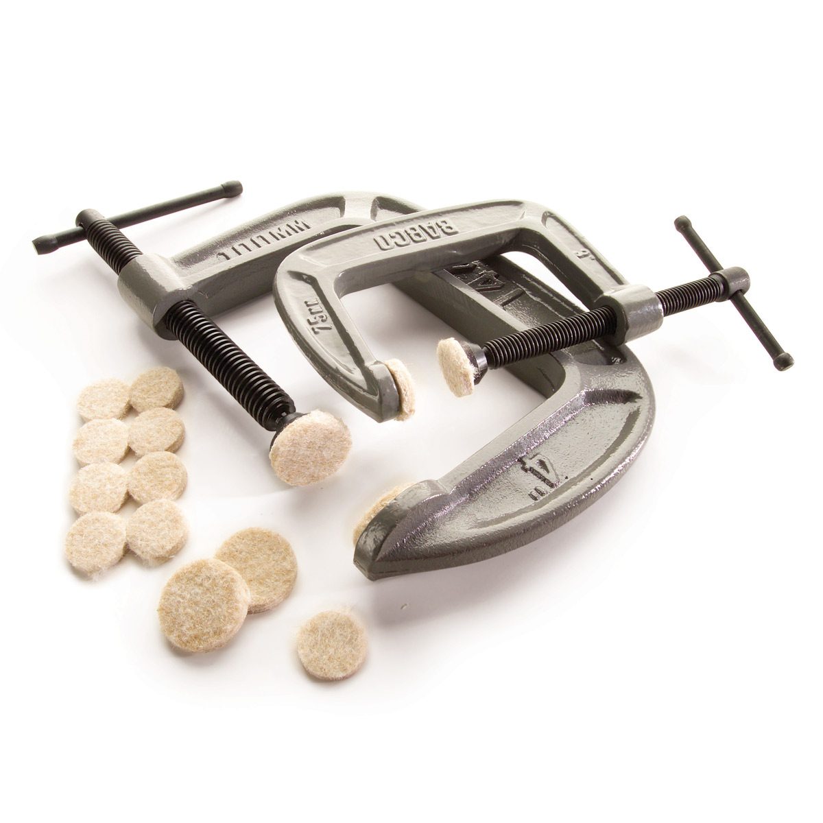 Are your C-clamp jaws leaving dents in projects or the furniture you’re repairing? Press adhesive-backed felt pads for table and chair legs on the jaw faces (you’ll get a better bond if you lightly sand the faces with fine sandpaper). Look for larger precut rectangular shapes that you can trim to fit your woodworking bar clamps faces as well. Gripping thanks to Kurt Lawton for this nifty tip.