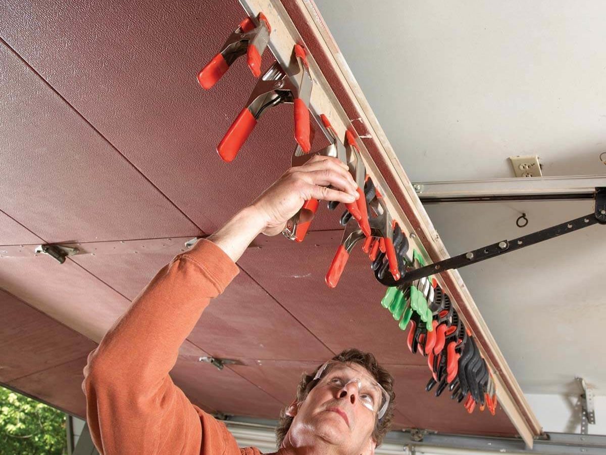 If you have a shop in the garage, try this tip from reader Dan Amstutz. Clip all of your spring clamps on the top garage door brace. The clamps are always right at hand whether you’re working with the door shut or al fresco (that’s with the door open, for those of you who don’t speak Garage Italiano).