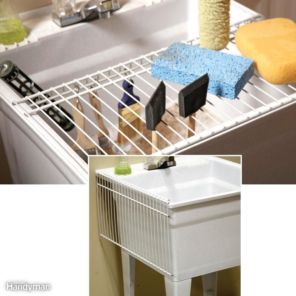 Cut a section of leftover wire shelving and set it over the front of your utility sink. It’s the perfect place to set items to dry. Hang paintbrushes from S-hooks so they can drip right into the sink. When you’re done with the shelf, hang it over the side of the tub so next time it’s right at hand.