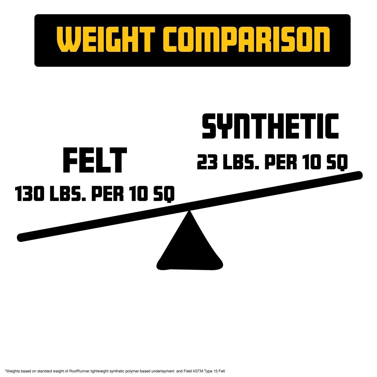 Roofing felt rolls are 3-feet long and cover about 400 square feet. Synthetic underlayment rolls are 4-feet long and cover closer to 1000 square feet. It does not take a roofing scientist to figure out that a roof can be covered faster with larger rolls, and more coverage per roll translates to fewer trips fetching additional product.