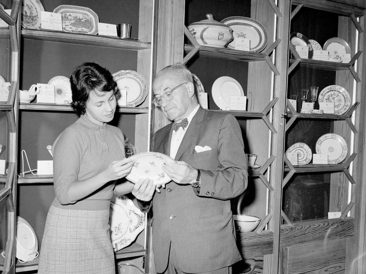 Lorraine Waxman Pearce, who died in 2017, served as the first curator of the White House. She helped find many of the pieces that became part of the rooms Kennedy and the committee restored. She wrote the first guide book to the White House furnishings but she also clashed with Jackie. She resigned in 1962. Pearce’s obituary in the New York Times said that Jackie wrote a note after Pearce left to the new curator, William Voss Elder III, that said having him on the job is “paradise.” Mrs. Kennedy also did not enjoy Pearce’s penchant to make decisions without asking for her approval.