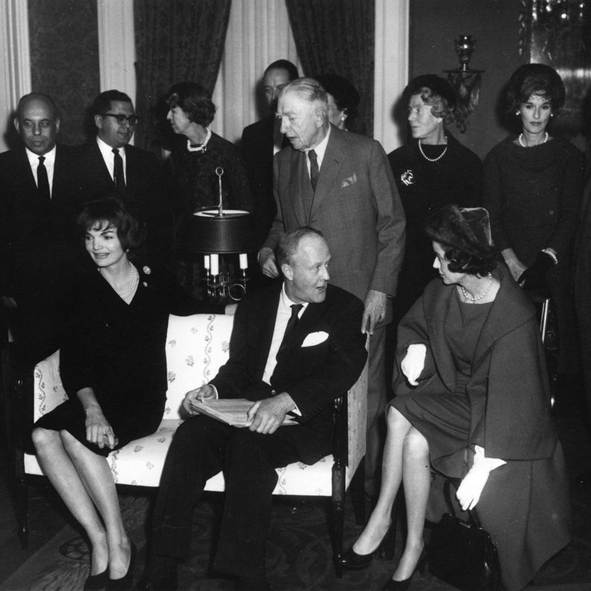 Jackie Kennedy transformed the décor of the White House when John F. Kennedy won the 1960 election. She got help from Henry Francis du Pont, a fervent collector of Americana items and Stéphane Boudin, a renowned designer from France, who also served as president of the House of Jansen, a leading interior decorating firm. Du Pont is seen looking at Kennedy in this photo during a tea for the Special Committee for White House Paintings.