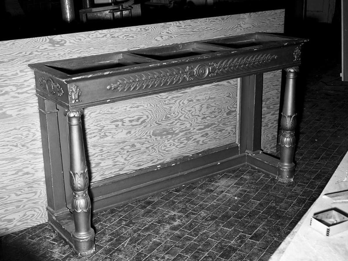 Jackie came across a 1946 French magazine article that mentioned the White House once held French Empire-style gilt wood furniture built by Pierre-Antoine Bellangé. She asked staff to find any pieces and they came up with a pier table, which was being used as a sawhorse. It took six weeks to restore it.