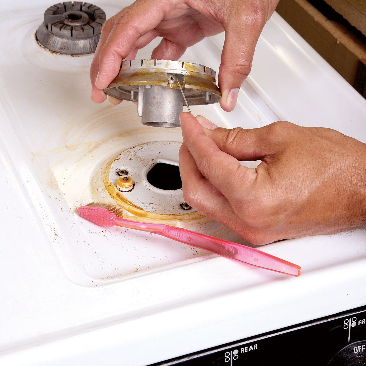 If your stove is covered with grease and other flammable grime, a small kitchen fire can get out of hand quickly. Clean and clear the area around the stove from potential fire hazards before turning on the heat.