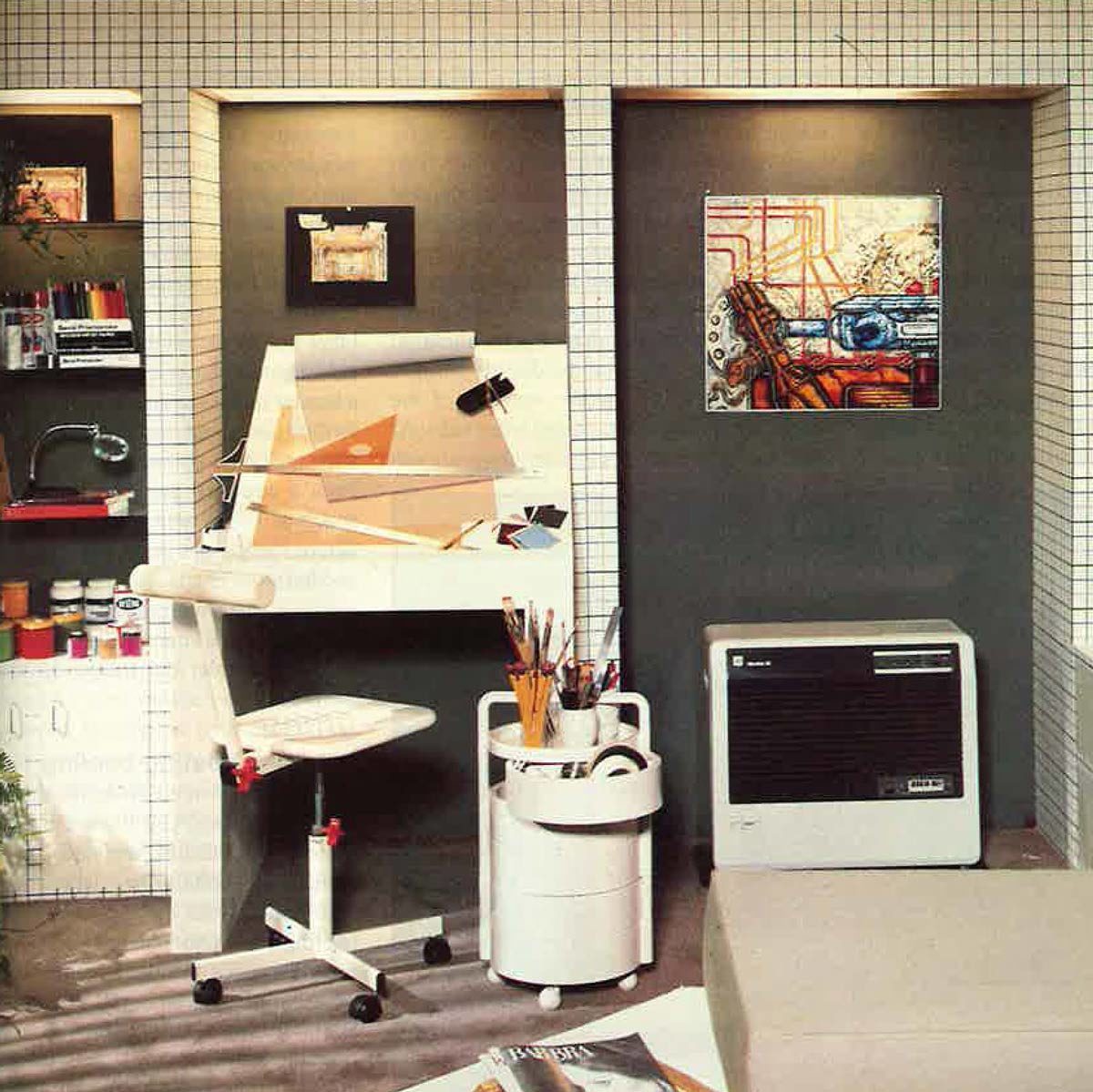 Those little doodles of 3D squares you like to do turned into furniture in our 1981 issue. We used ceramic tiles on wooden frames to create these pieces. We used them to display plants and though not every house had furniture like this, there was certainly an emphasis on geometric patterns in the ’80s.