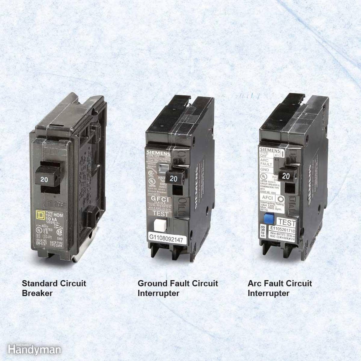 Arc fault circuit interrupters (AFCIs) prevent fires in all living areas where appliance cords are prone to be pinched or crimped, or chewed by pets.They used to be required only on bedroom circuits, but the National Electrical Code now requires AFCI protection in all living areas. They’re equipped with sophisticated electronics that can detect an arcing condition (like in a frayed lamp cord), which may not be detected by a standard circuit breaker until after a fire has started. AFCI protection is not just required for new construction; it’s now also required where branch-circuit wiring is modified, replaced or extended into existing homes.
