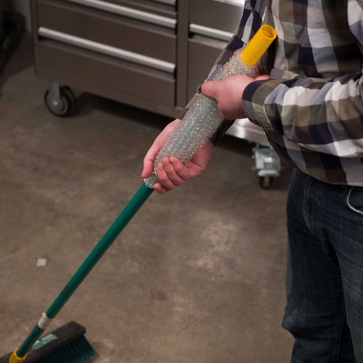 Make lifting heavy loads with your wheelbarrow a little more pleasant by adding these cushioned hand grips. Reuse an old rubber bike tube by cutting pieces to fit over the wheelbarrow handles. If needed, use a hair dryer to warm up the rubber and make it easier to stretch. The bike tube provides the perfect amount of padding and traction. Plus: Build your own garden cart with these plans.