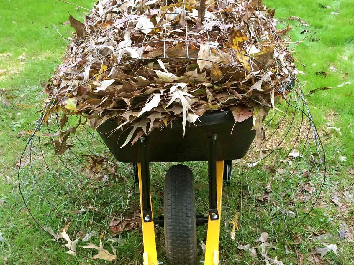Moving leaves in a wheelbarrow is no fun. A couple of good bounces and your leaves are all over the ground again. To solve this issue, take a 4-ft. piece of wire mesh fence and bend it around the top and sides of my wheelbarrow. Now you can load the wheelbarrow full of leaves and have them stay put as Iyouwheel them to the compost pile.