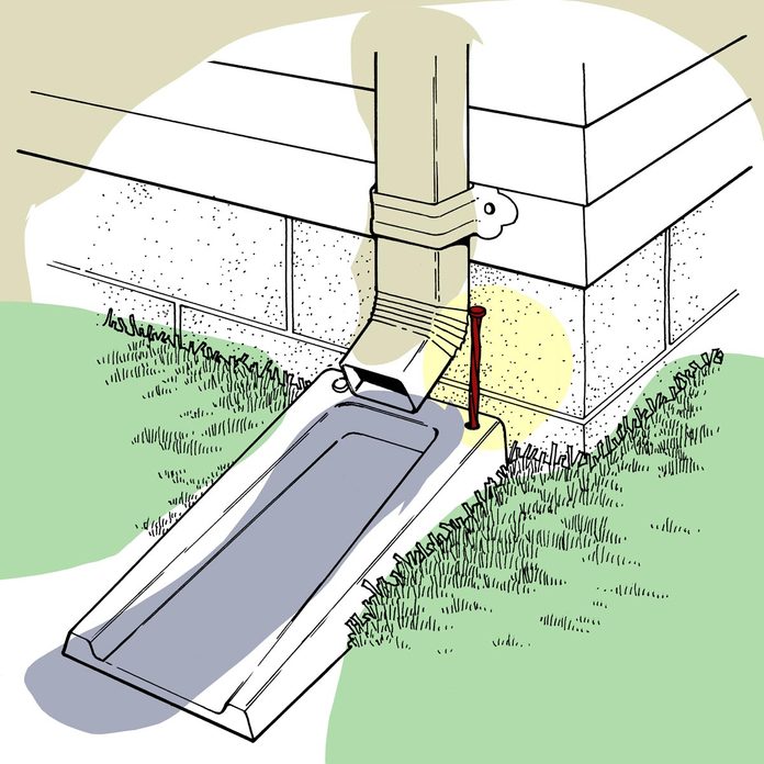 Do those plastic downspout splashblocks tend to wander away from the foundation of your house, allowing water to seep into the basement? To prevent this, drill two holes through the hefty corners of the plastic at the back end. To anchor it, drive two large spikes through the holes into the ground. — Joseph Perrone