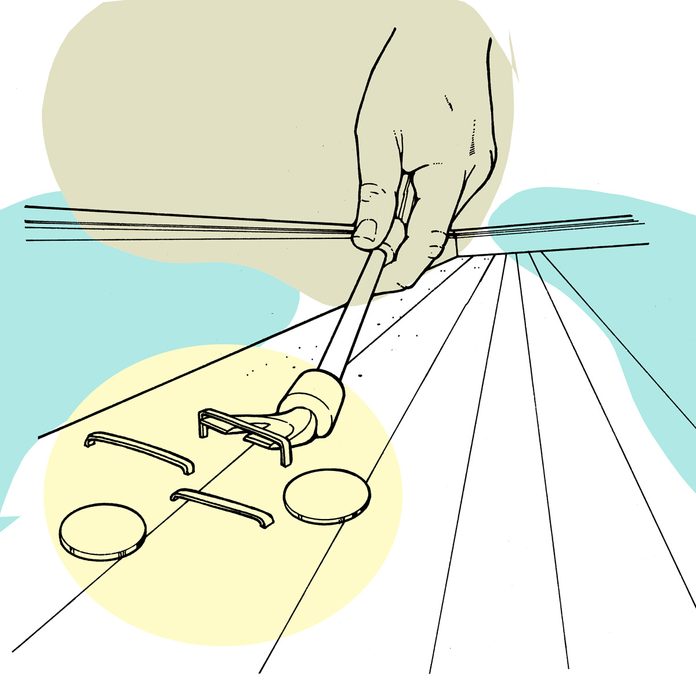 Paver hacks are always a popular topic for our readers. This one is really handy for when you have some individual bricks or pavers in your sand-based patio may need re-leveling after a winter of freezing and thawing. How do you get the brick or paver out? Make these pullers from two pieces of coat-hanger wire. Slip the wires down both sides of the offending paver, turn them a quarter turn, and pull up the paver. For large patio blocks, make four pullers, and get a second person to help.