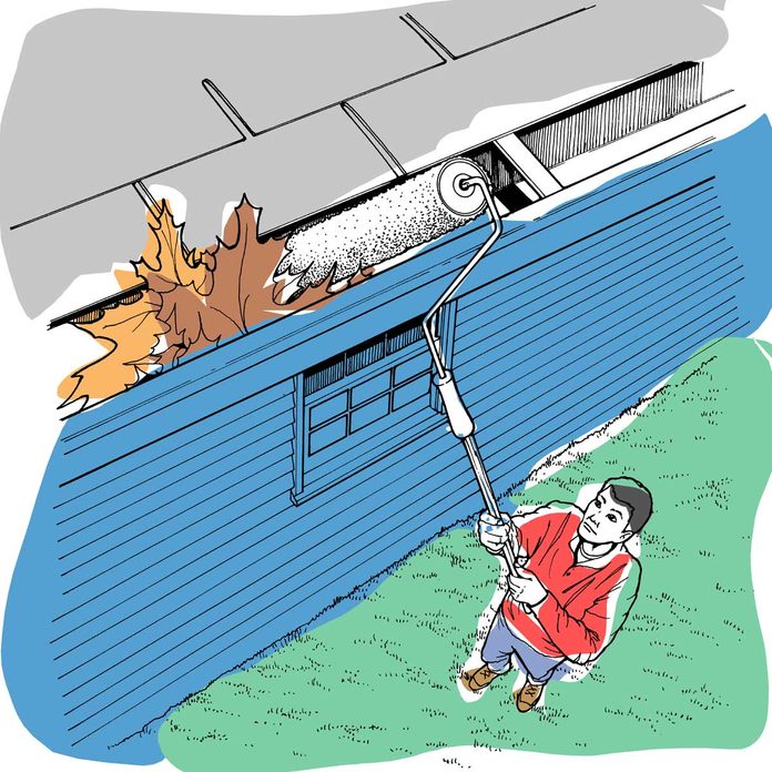 Clean your one-story-high gutters right from the ground using an old paint roller on an extension handle. It’s angled just right to push leaves and debris out quickly and easily. — Lee Sens