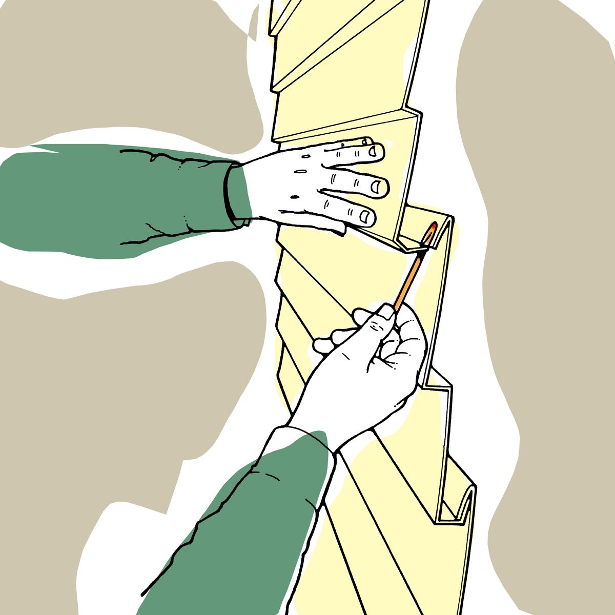 When you’re installing crown molding against a textured ceiling, here’s a way to get a nice, tight fit: Cut an 8-inch piece of the molding you’re putting up, and staple a piece of medium-grit sandpaper over the top edge. Then hold the molding in place against the wall and ceiling exactly as it would be attached, and slide it back and forth to sand the area smooth. Not only do you get a perfect fit, but the slight ridge formed by the sanding helps hold the molding in position when you nail it. — Mark Swinson