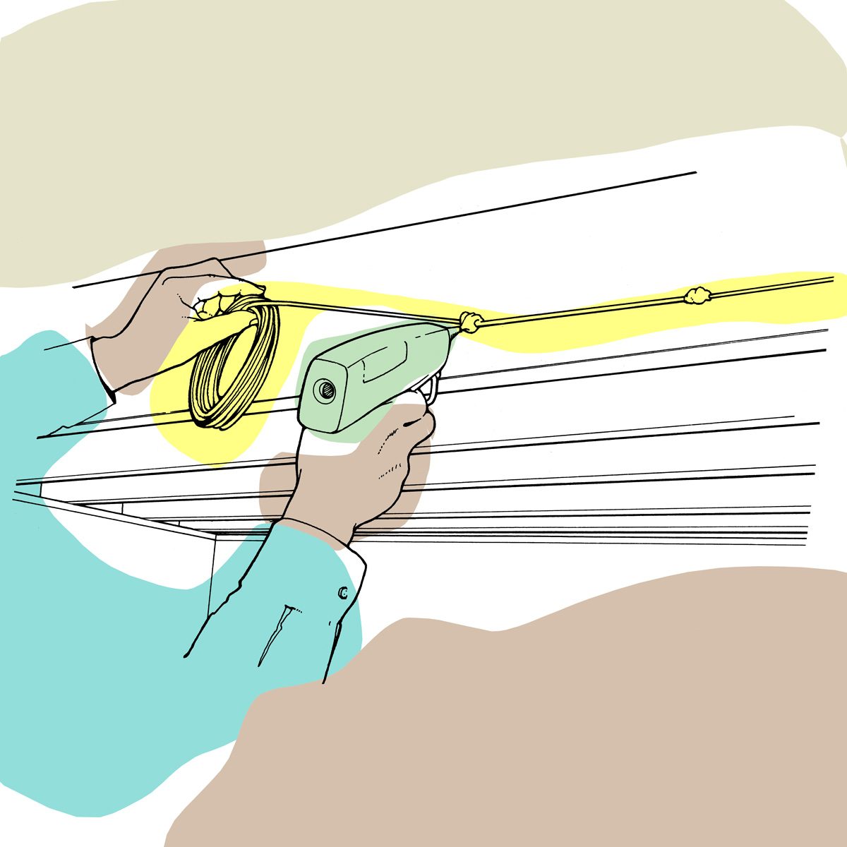 When you have to wrap wires with electrical tape in a tight area, pull off a few inches of tape and wrap it loosely on itself around your index finger so the sticky side is out. Then you can just roll the tape around the wire with your thumb, using your middle finger to support it. —Bob Lacivita