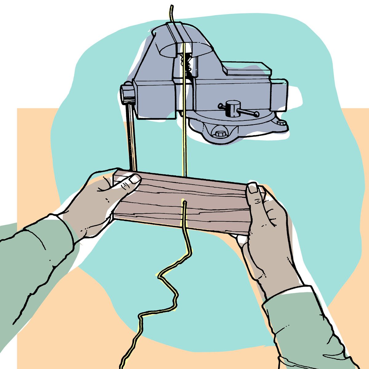 Here’s a method that works really great for getting kinks and bends out of wire—even fairly heavy wire: Drill a hole in an 8-inch long piece of 2×2 or 2×4. Make the hole slightly larger than the diameter of the wire. Slip the wire through the hole and clamp the end of the wire in a vise. Then, using the wood as a handle, pull the hole along the wire with both hands. — Ruth Whitehead