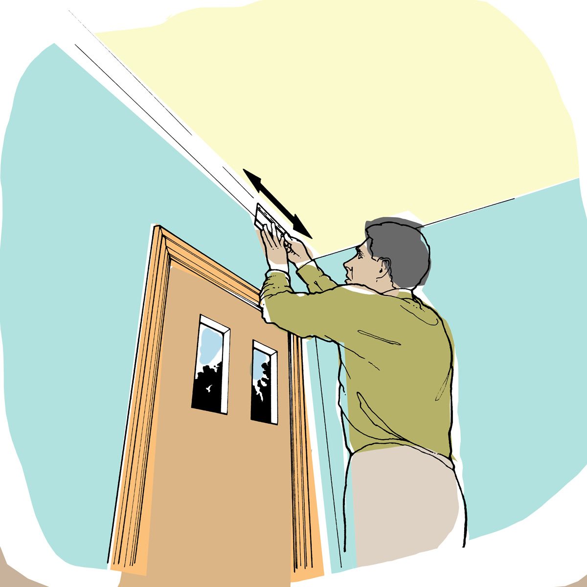When you’re installing crown molding against a textured ceiling, here’s a way to get a nice, tight fit: Cut an 8-inch piece of the molding you’re putting up, and staple a piece of medium-grit sandpaper over the top edge. Then hold the molding in place against the wall and ceiling exactly as it would be attached, and slide it back and forth to sand the area smooth. Not only do you get a perfect fit, but the slight ridge formed by the sanding helps hold the molding in position when you nail it. — Mark Swinson