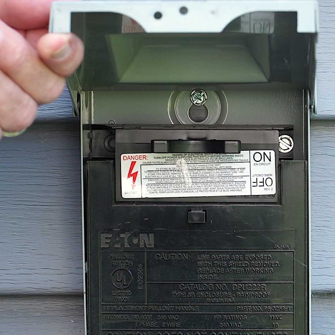 - To start this project, disconnect the service at the air conditioner condenser by pulling the plug connector in the power box, or you can also flip the AC breaker switch off in your main breaker panel.