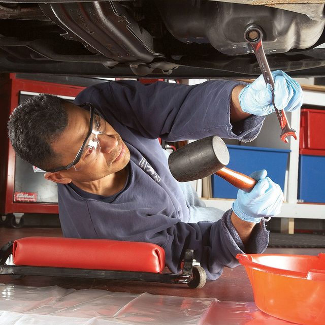 It’s possible, as long as your car has enough ground clearance to safely access the drain plug. “If not, you will need a ramp or jack stand,” says Luna. “It is extremely unsafe to crawl under a car that is only supported by a jack!”