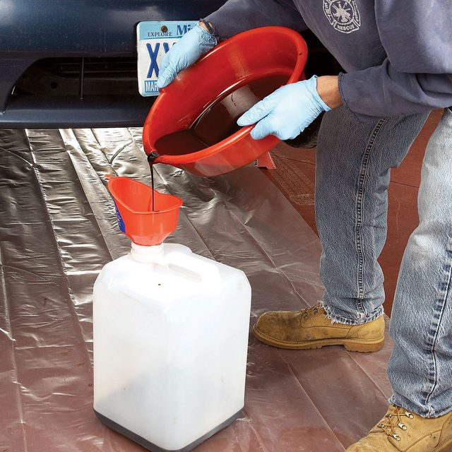 • Pour the used oil into a large jug.