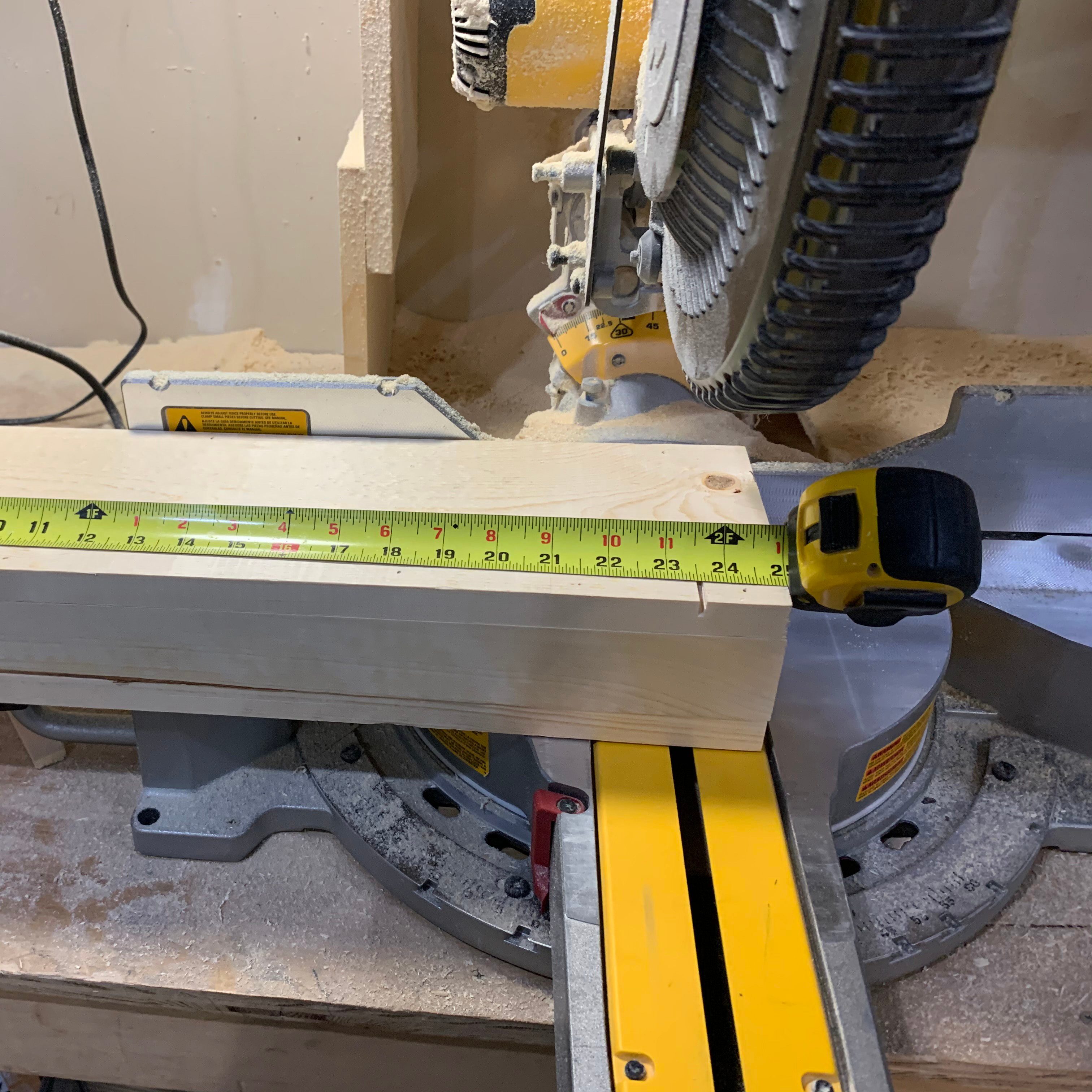 - Cut two 2x4s to 27-1/2-in.