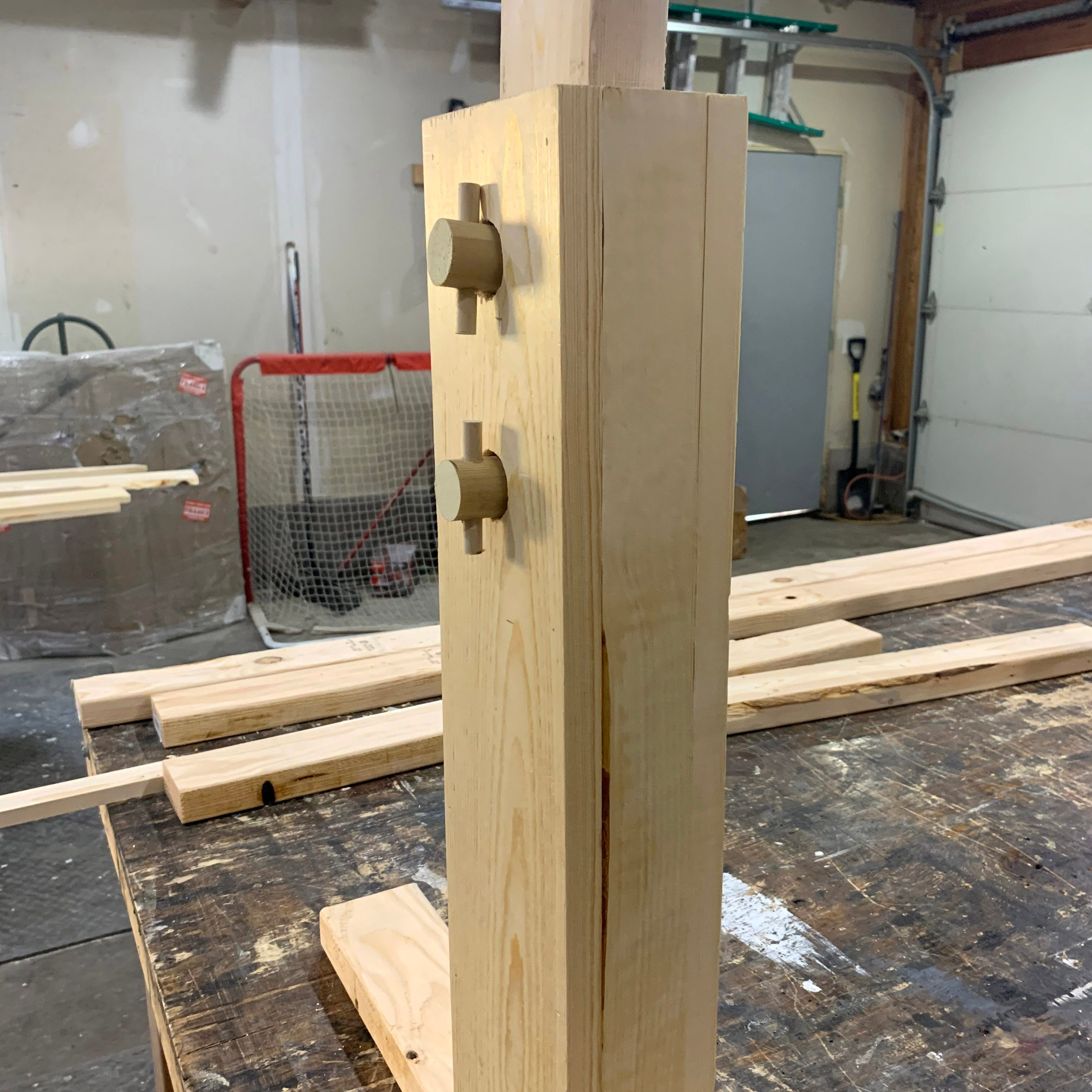 Note: Pine lumber (1x) was used for everything except the base, inner legs and crosspiece. For those, we used 2×4 spruce.