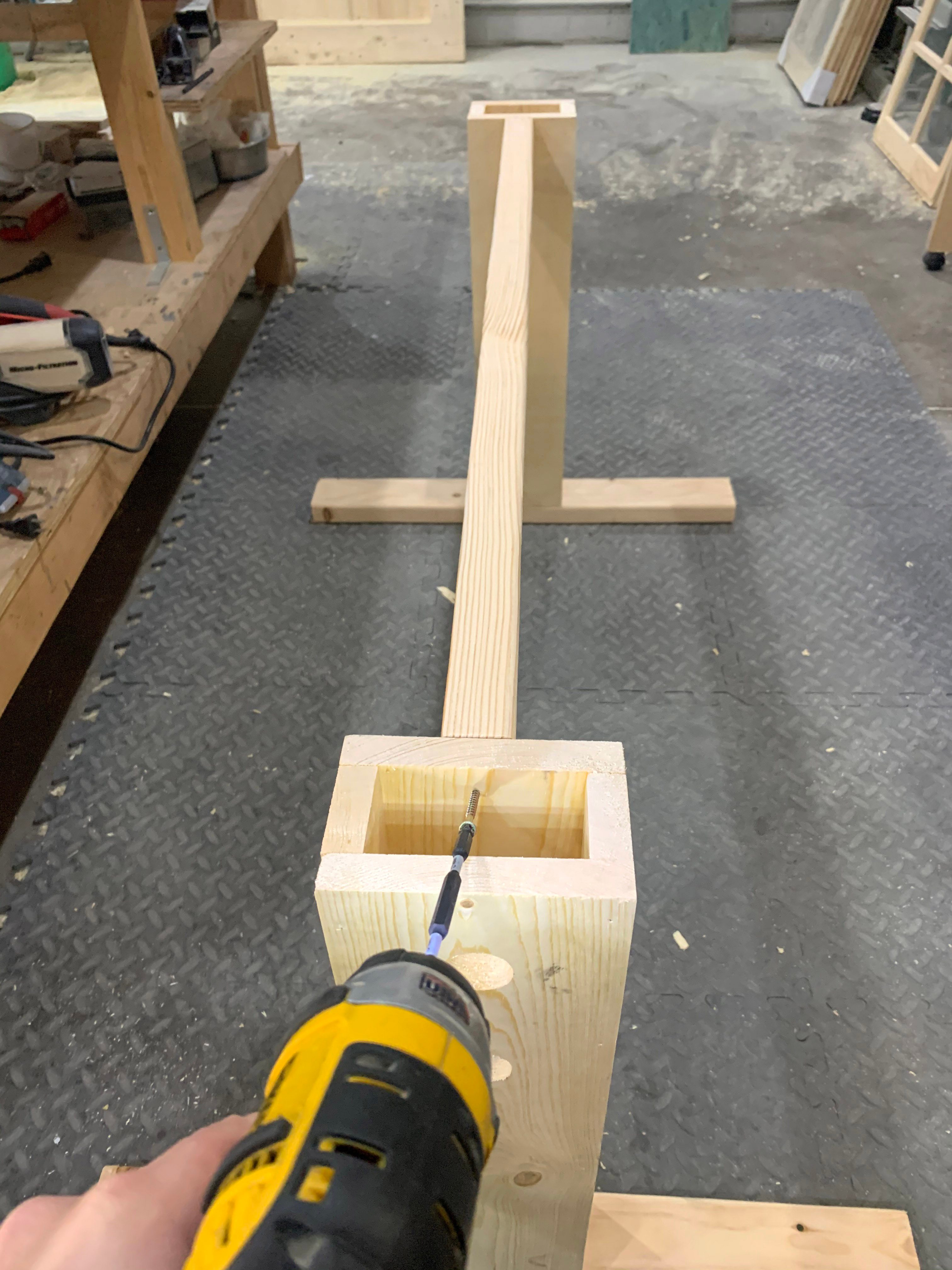 - Flip those upside down and glue them, pre-drill with a 1/8-in. bit