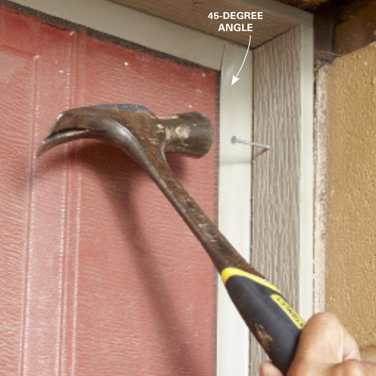- Place the doorstop against the top and side jambs so the vinyl weather stripping is at a 45-degree angle.