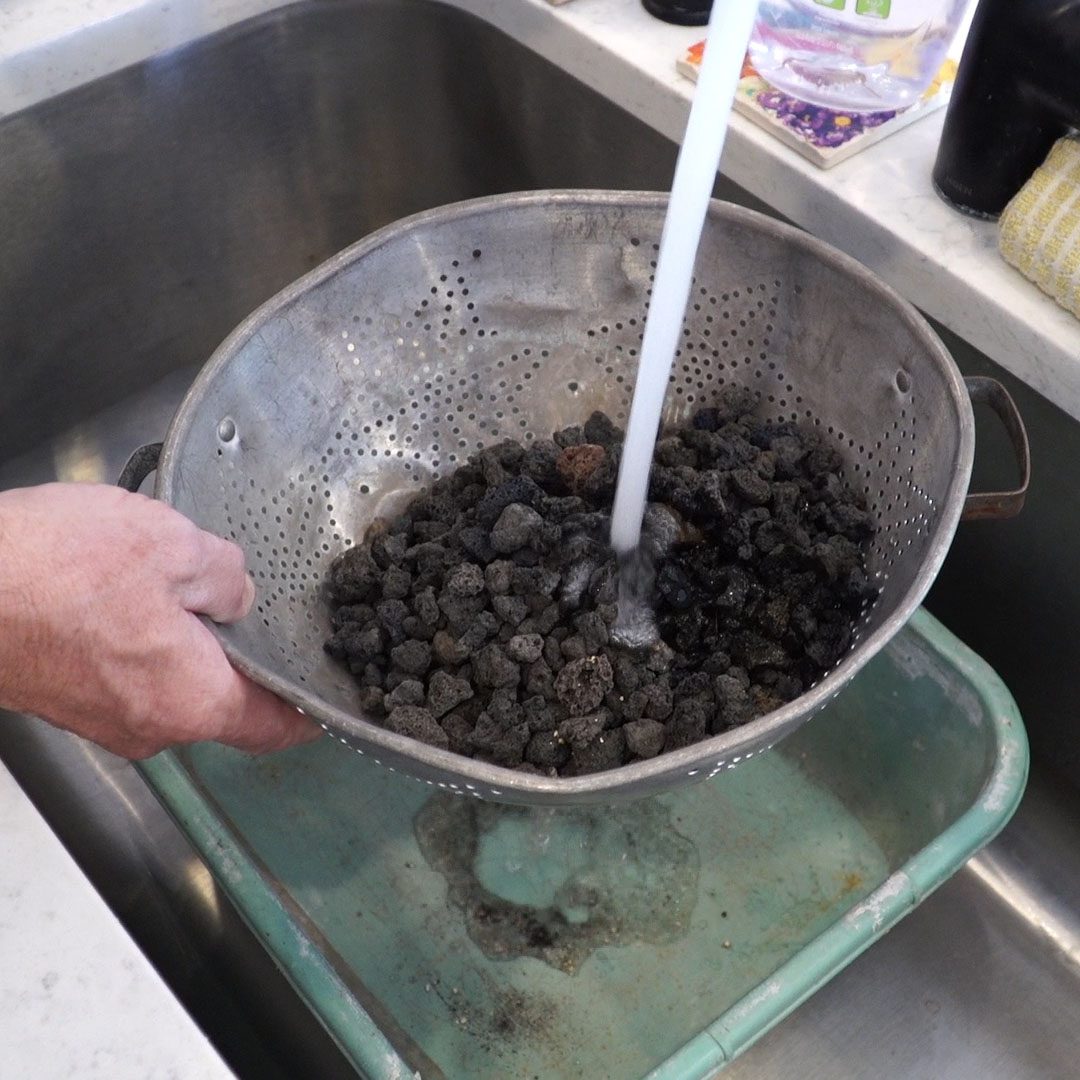 - Remove the lava rocks and place them in a container to wash.