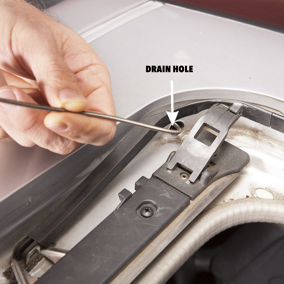 If that doesn’t do the trick, try running a very small flexible “plumbing” snake down the tube to break up the clog. (Actually, it’s a speedometer cable found at any auto parts store for about $8.) Snake out a really stubborn clog with a speedometer cable. Twist the cable as you feed it down the tube. If cleaning the tubes doesn’t work, don’t try to disassemble the mechanism or bend the sheet metal to get a better fit. That’s a job for a top-notch body shop. If the car isn’t worth the cost of the repair, we rescind our earlier warning. Go for the silicone and live without the wind in your hair.