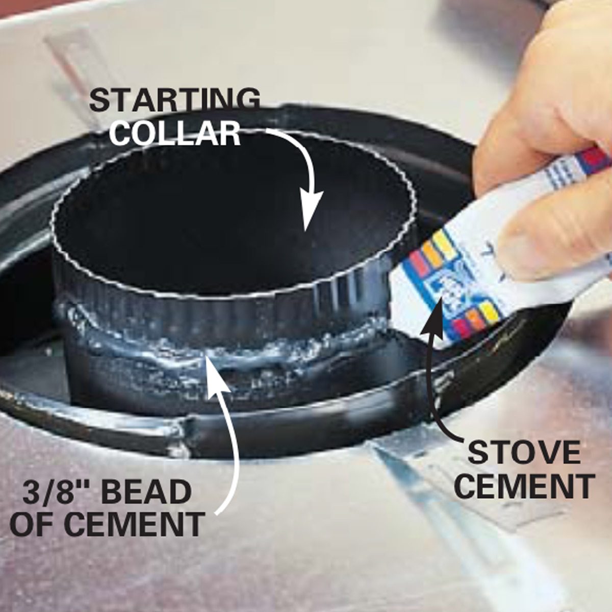 - Use the sealant recommended by the manufacturer, usually stove cement or high-temperature silicone caulk.