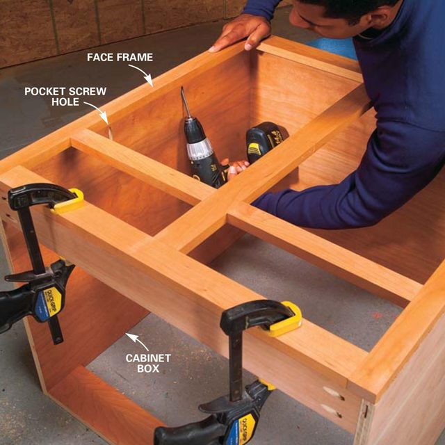 Even a novice can build nice cabinets. Make tight, strong wood joints quickly and easily with pockets screws. No clamps, no dowels. We show you how to do it in two steps.