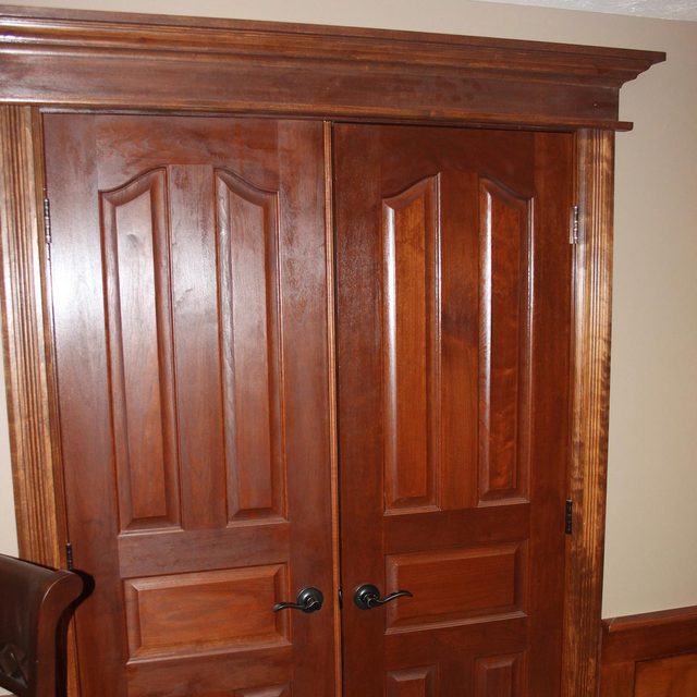 For the crowning touch, Matt installed solid cherry doors, and then trimmed them in this traditional style with poplar stained to match.