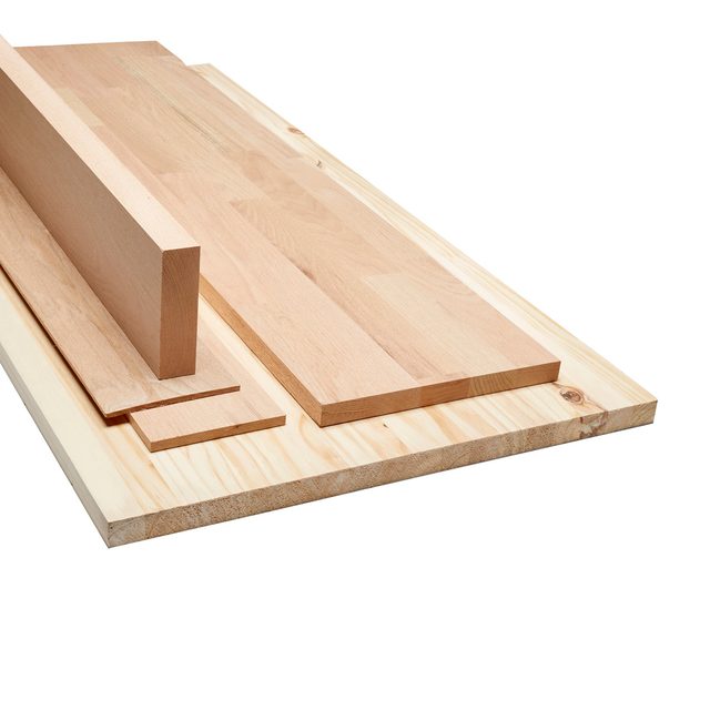 If you need wide stock, you’ll also find large 1-in. or 1-1/4-in. edge-glued panels in one or two species. This is a better option than buying really wide boards, which are prone to cupping. Solid wood stair treads are another handy option.